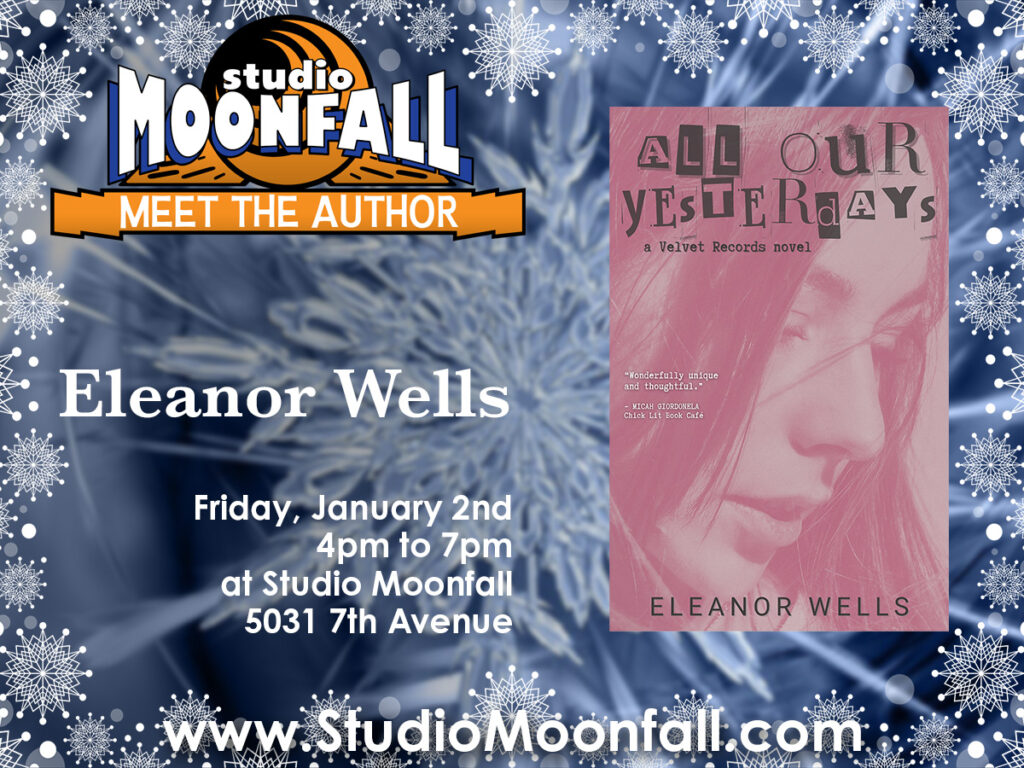Author Eleanor Wells is coming to Studio Moonfall – 5031 7th Avenue in Kenosha – on Friday, January 2nd, 2026.