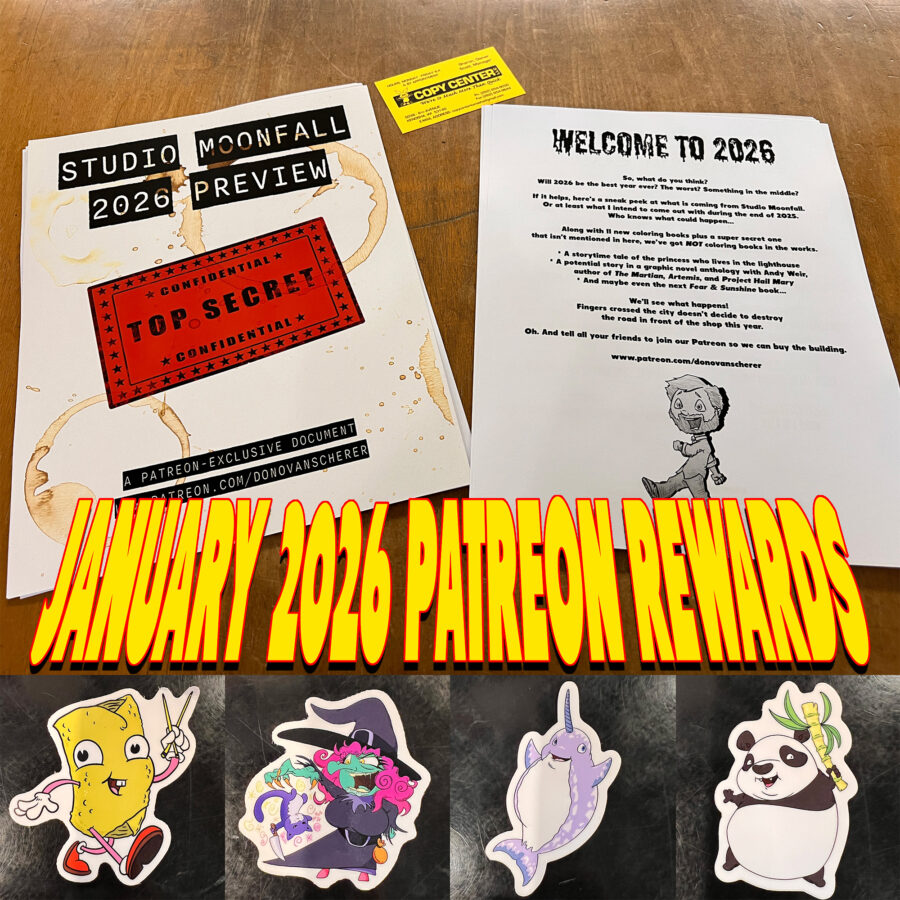And we’ve got a TON of new authors in the shop from Reader Nation in Las Vegas. In fact, the store is so full of books, I’m not sure what to do other than to try and convince everyone reading this into signing up for the monthly goodies at Patreon for the glorious Studio Moonfall expansion. Imagine if the interns had tiny bedrooms to live in so they wouldn’t have to commute and could just work all the time. They’d love it!